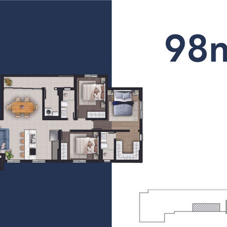 São 19 unidades, com 3 opções de planta tipo e 3 opções de cobertura duplex.